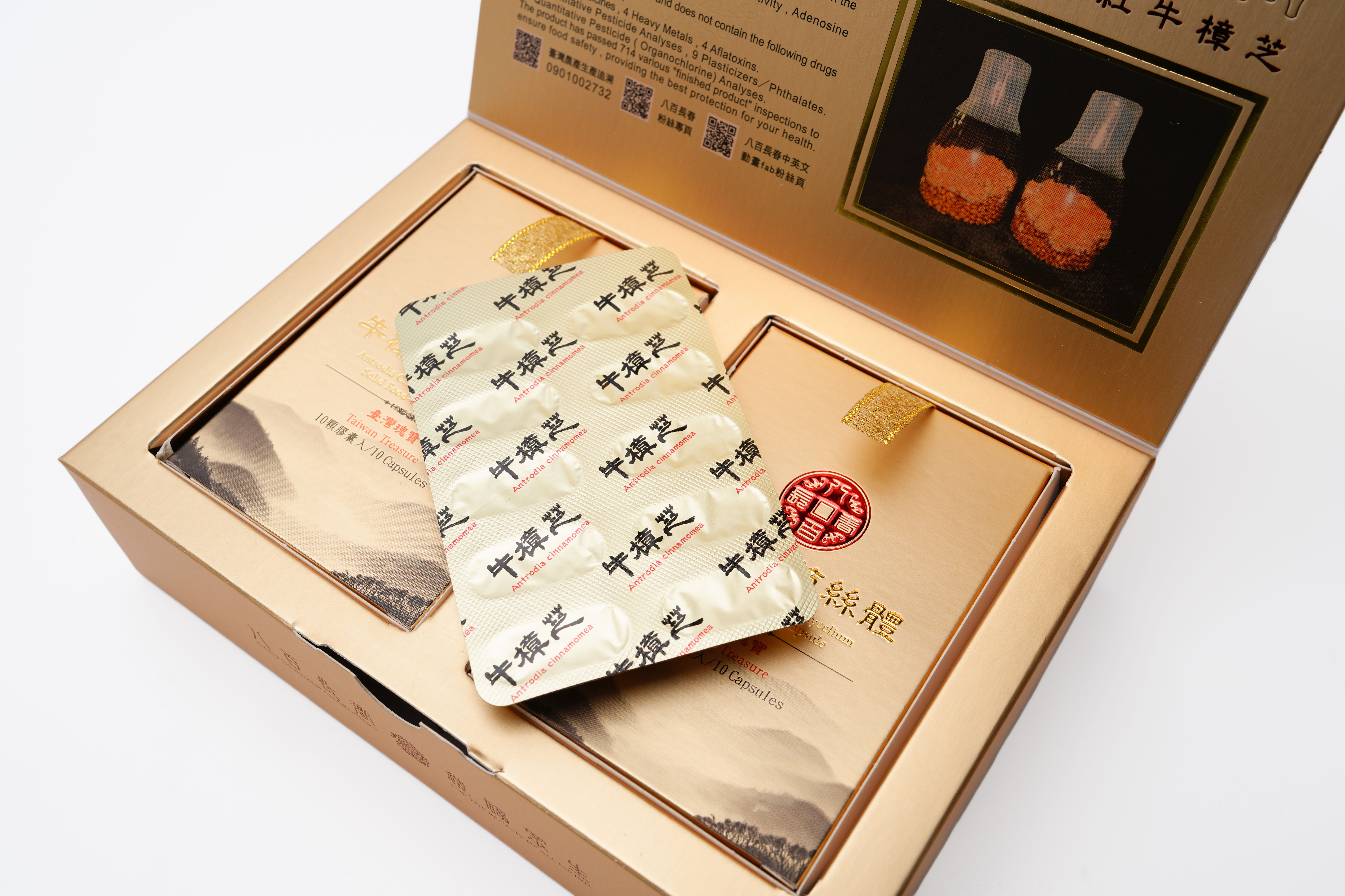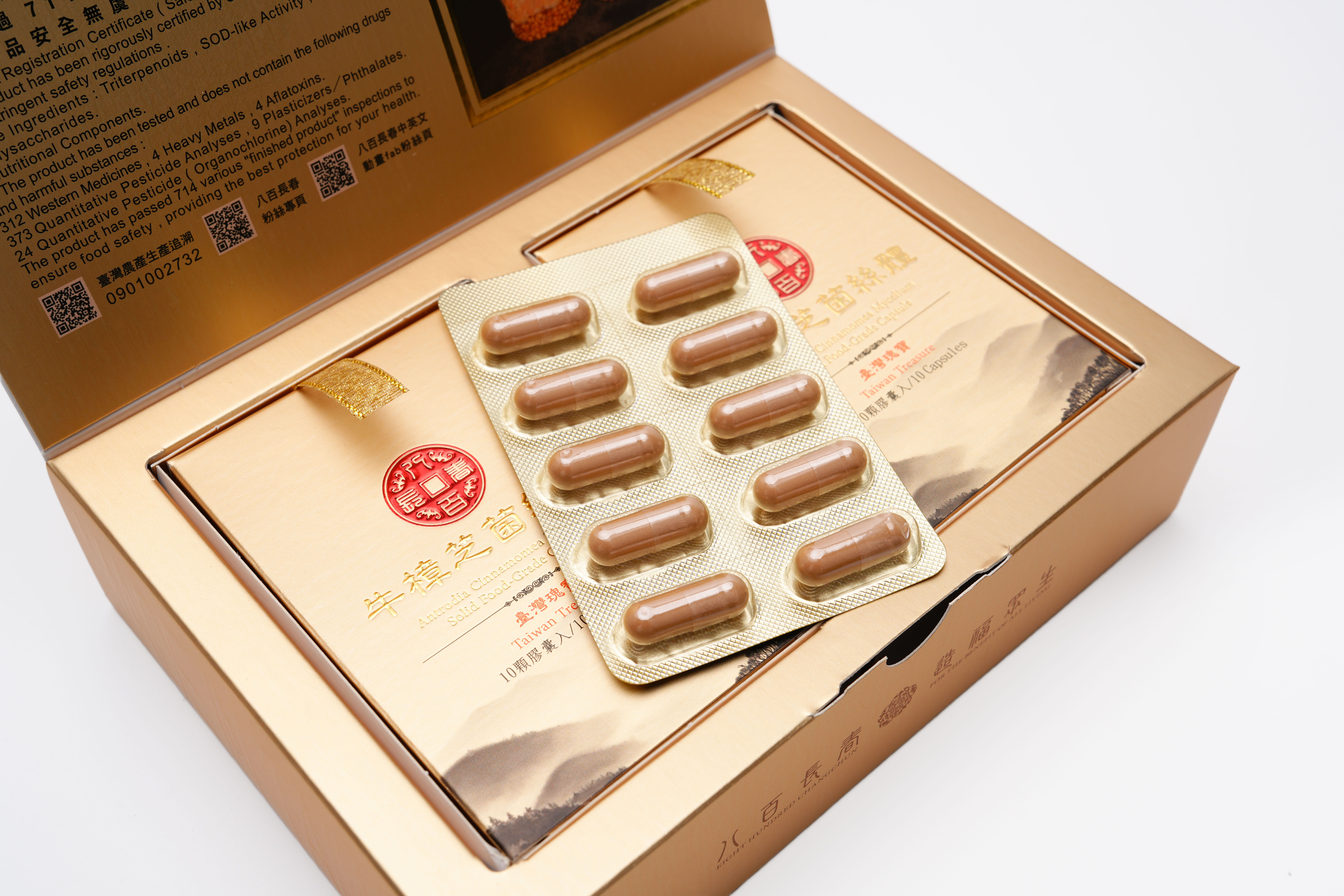 牛樟芝菌絲體( Antrodia cinnamomea,五穀雜糧固態培養 ) 五穀雜糧固態基質( 小麥、大麥、蕎麥、 小麥胚芽、麩皮 ) 植物性膠囊殼( 羥丙機甲基纖維素、純水、鹿角菜膠、氯化鉀 )。