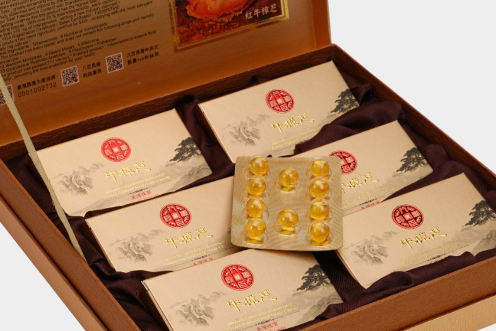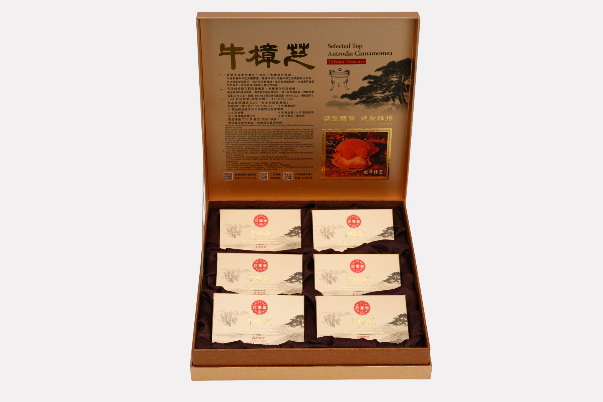 牛樟芝子實體( Antrodia cinnamomea,牛樟木培養 ) 油萃液、明膠、甘油、純水。
